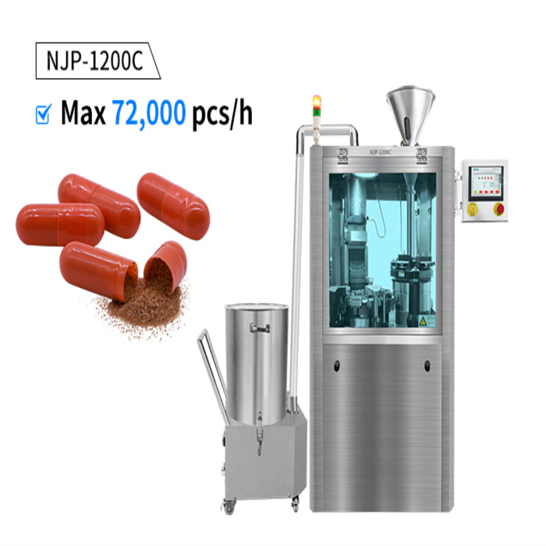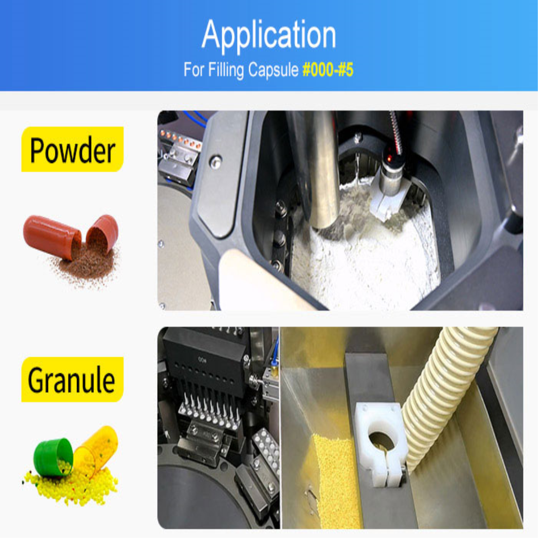 The high speed automatic capsule filler can fill powder, granules and other materials into hollow capsules. 1200C meets the cGMP requirements, makes it an ideal equipment for filling medicines and nutrients.