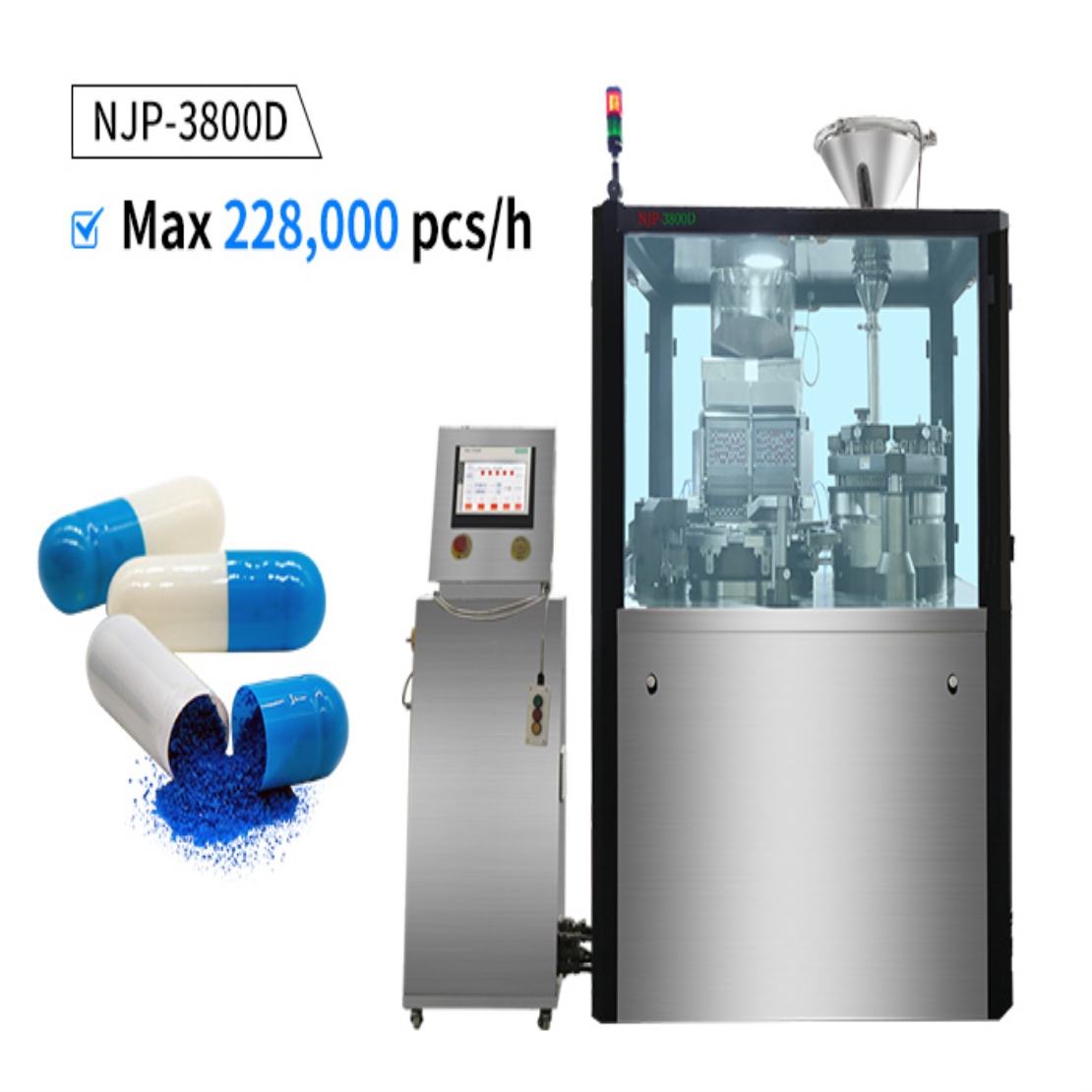 The high speed automatic capsule filler can fill powder, granules and other materials into hollow capsules. 3800D meets the cGMP requirements, makes it an ideal equipment for filling medicines and nutrients.