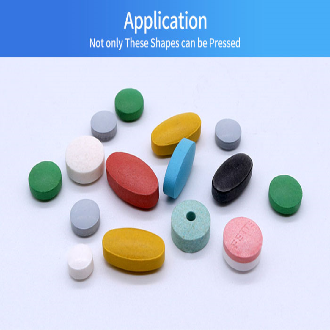 tablet press can efficiently press powder and granules into tablets with diverse diameters and thicknesses. And with customized dies, the ingredients can even be pressed into different shapes for your needs, such as round, triangle, core rod, and special-shaped tablets.