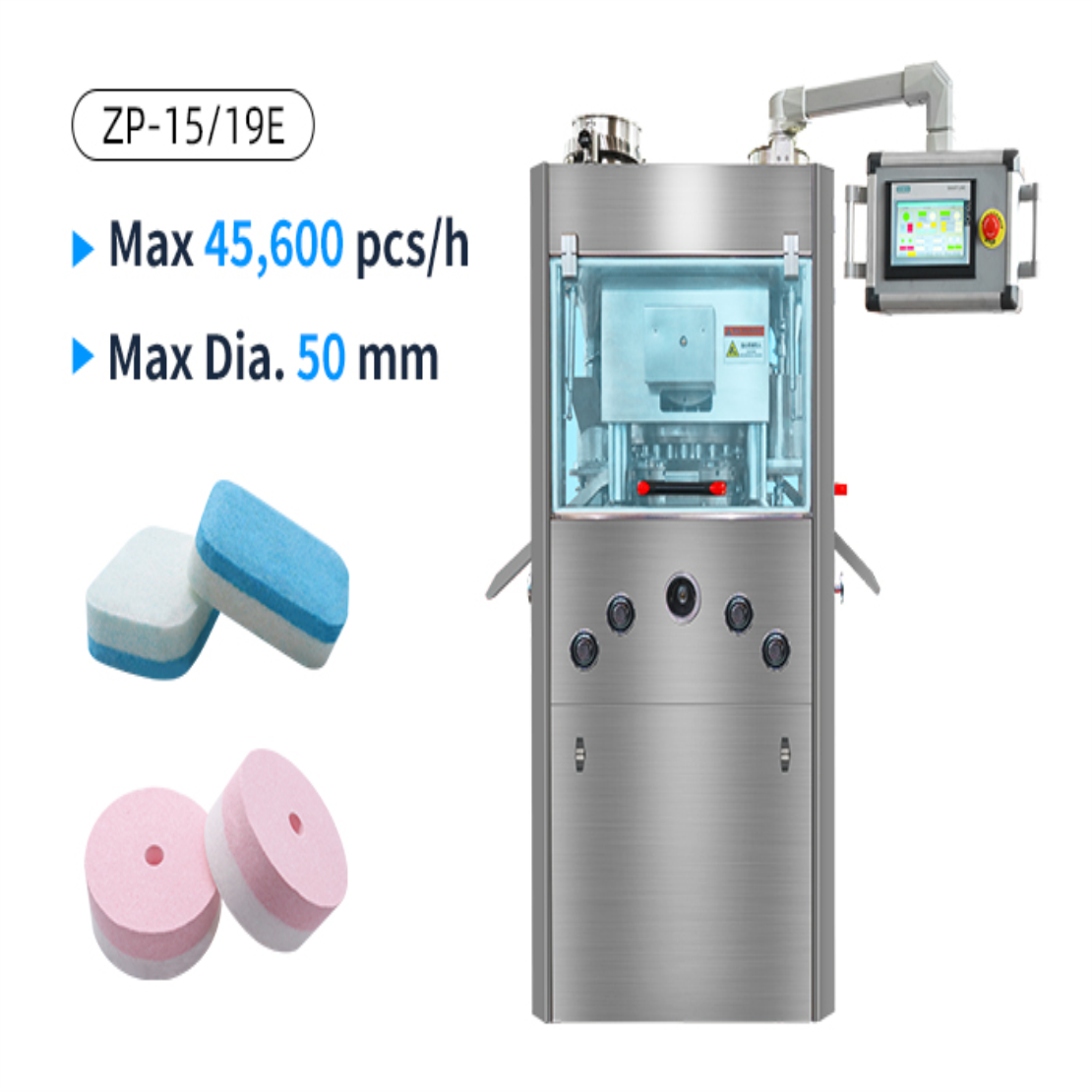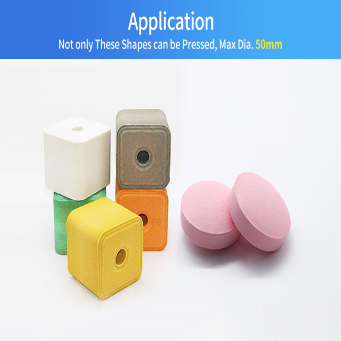 tablet press can efficiently press powder and granules into tablets with diverse diameters and thicknesses. And with customized dies, the ingredients can even be pressed into different shapes for your needs, such as round, triangle, core rod, and special-shaped tablets.